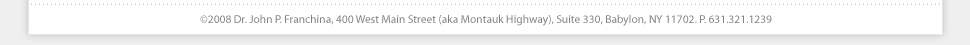 Please call 631.321.1239 in advance to setup an appointment. You can also reach us via email at info@drfranchina.com.